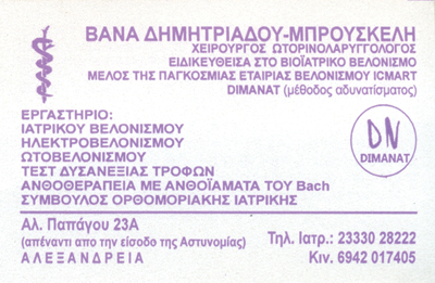 Δημητριάδου Μπρουσκέλη Βάνα: Ωτορινολαρυγγολόγος - Βελονίστρια