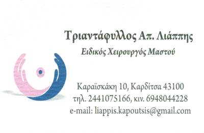Ειδικός Χειρουργός ΜαστούΣυνεργάτης Διαβαλκανικού ΚέντρουΔέχεται με ραντεβού κάθε Παρασκευή 09:00 - 13:00 & 17:00 - 21:00.