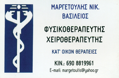 Ο Μαργετούλης Νικ. Βασίλειος γεννήθηκε στον Πειραιά το 1981.Το 2012 ολοκλήρωσε τις σπουδές του στο Ανώτατο Τεχνολογικό Εκπαιδευτικό Ίδρυμα (Α.Τ.Ε.Ι.) Πάτρας στις σχόλες Υγείας και Πρόνοιας στο τμήμα Φυσικοθεραπείας. Από το 2004 εξασκεί το επάγγελμα του φυσικοθεραπευτή εργαζόμενος σε κέντρα αποκατάστασης, αθλητικά κέντρα, φυσικοθεραπευτήρια, μονάδες φροντίδας ηλικιωμένων ( Μ.Φ.Η ), καθώς και μέχρι σήμερα αναλαμβάνει την αποκατάσταση ασθενών στο σπίτι. Είναι μέλος του Πανελλήνιου Συλλόγου Φυσικοθεραπευτών και των επιστημονικών τμημάτων καρδιοαγγειακής και αναπνευστικής φυσικοθεραπείας και αποκατάστασης στην Μονάδα Εντατικής Θεραπείας ( Μ.Ε.Θ ) και Γηριατρικής. Είναι επίσης συμβεβλημένος φυσικοθεραπευτής του ΕΟΠΥΥ.
