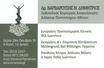 Χειρουργός αποκατάστασης, καθημερινά 09:00 - 13:30 & 17:30 - 20:30 (Δευτέρα - Τρίτη - Πέμπτη), Τετάρτη & Παρασκευή με ραντεβού.